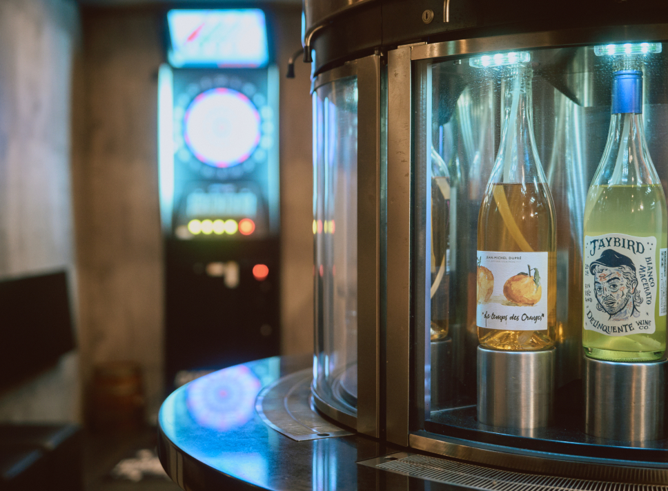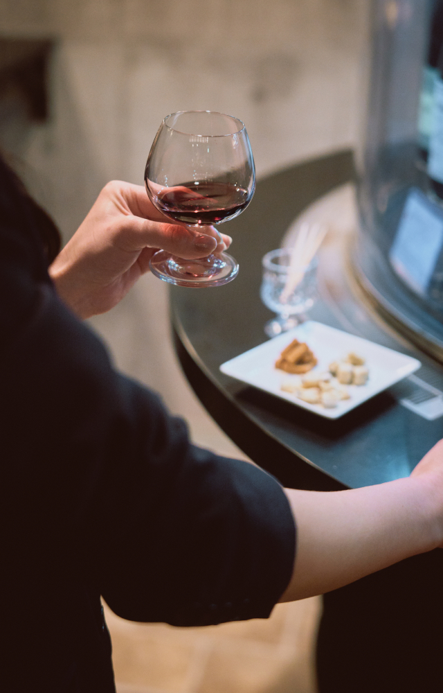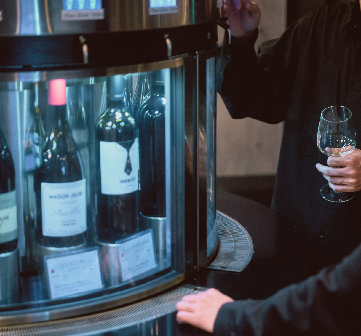 お好みのワインを選び、ボトル上部に表示された 25ml/50ml/100ml の量を選択するだけで、ご自身のペースで少しずつ、さまざまな銘柄をテイスティングいただけます